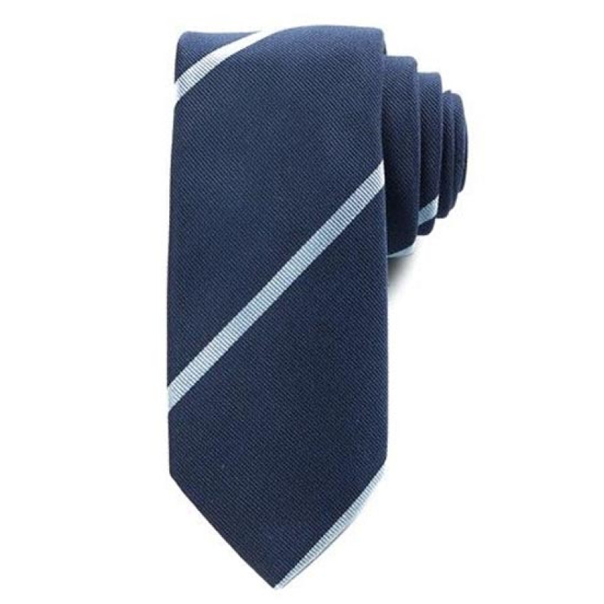 Diskret Stribet maritime silkeslipsslips i silke/bomuld i blå. Bredde: 7 cm - Længde: 152 cm. Flot klassisk vendbart herre bælte med sort på den ene side og brun på den anden side. Spændet kan vendes så man kan udnytte begge sider af bæltet.